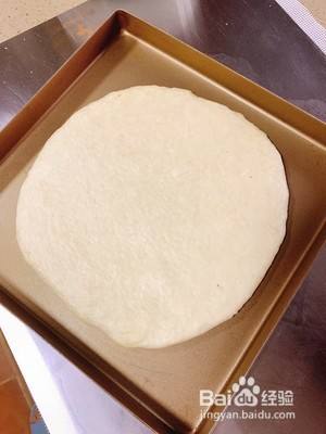 擀的有点大了,哈哈,差不多20厘米就可以了,我这个估计25了,在上面轻轻涂点软化好的黄油或者直接喷点水也可以