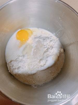 把面团材料除黄油以外全部丢进厨师机里揉成光滑的面团后加入黄油继续揉至出手套膜