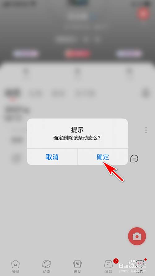 弹出提示框中点击确定的选项,即可删除我的动态。
