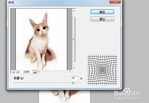 选择“椭圆选框工具”画一个椭圆在猫的眼睛上,执行“滤镜”-“扭曲”-“挤压”。