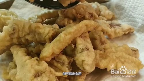 将猪肉裹上面浆,下入油锅中炸五分钟,即可捞出食用。
