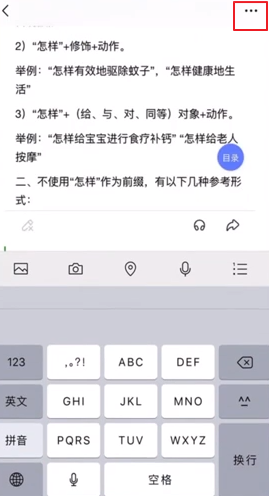 4选择图片的图标后按顺序选取截图,选择完图片后点击右上角的“三个圆点”。