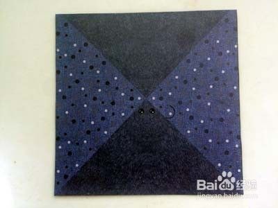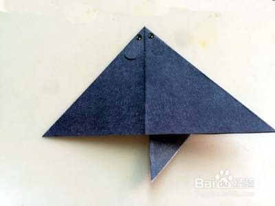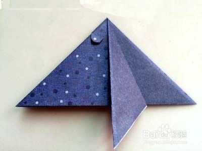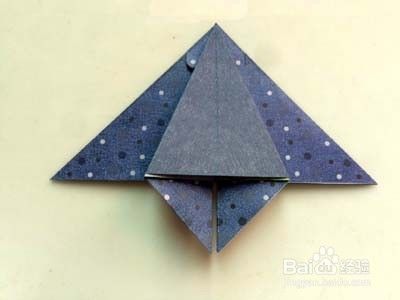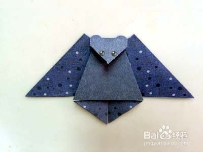 将三角形顶往下折叠。最后修剪肩部,便折成一只漂亮的小蝙蝠啦。