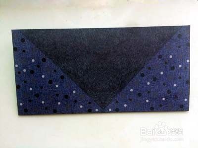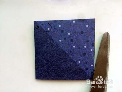 在三角形约一厘米处,沿图案上的黑线剪开。上层三角形的右边线沿中线折叠。