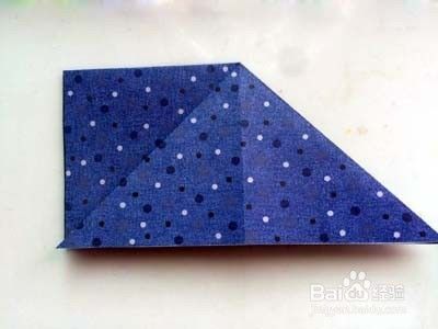 将小正方形上一层撑开后,压折成三角形。翻转,将另一面也压折成三角形,从面形成双三角形。