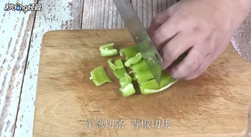 2洋葱切条,青椒切块。