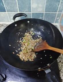 接着倒入50克香辣汁,1小碗清水,放入蒜沫。