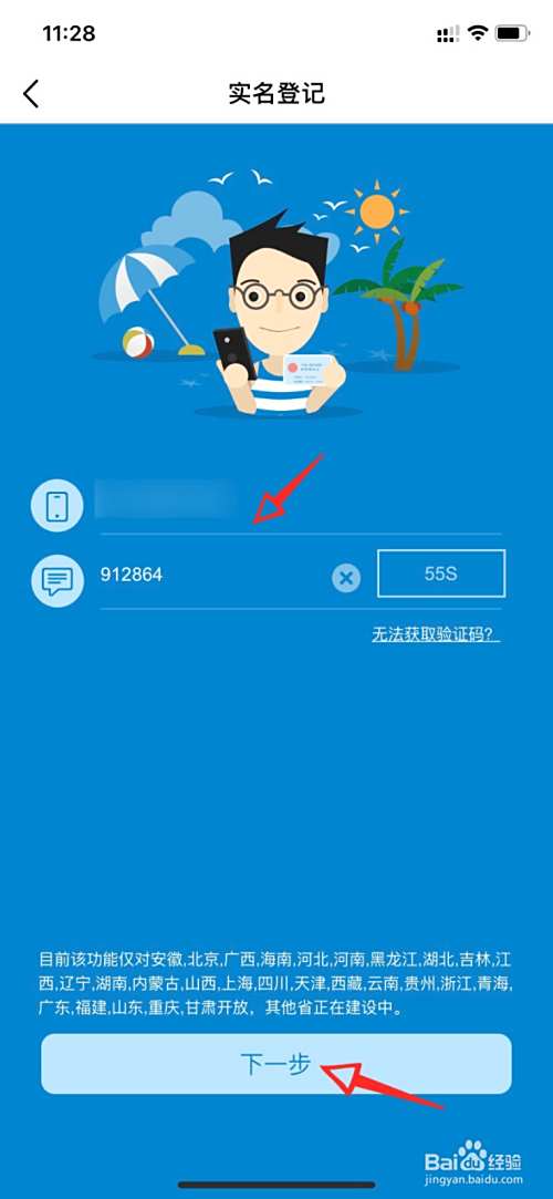 在实名登记页面里,输入手机号码信息后点击“下一步”。