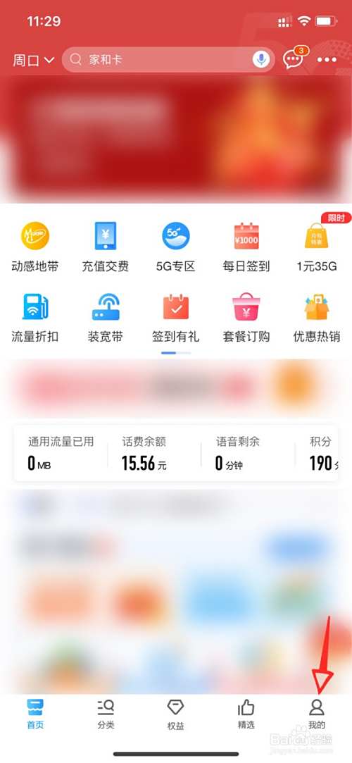 打开手机上的中国移动软件,进入app后点击“我的”。