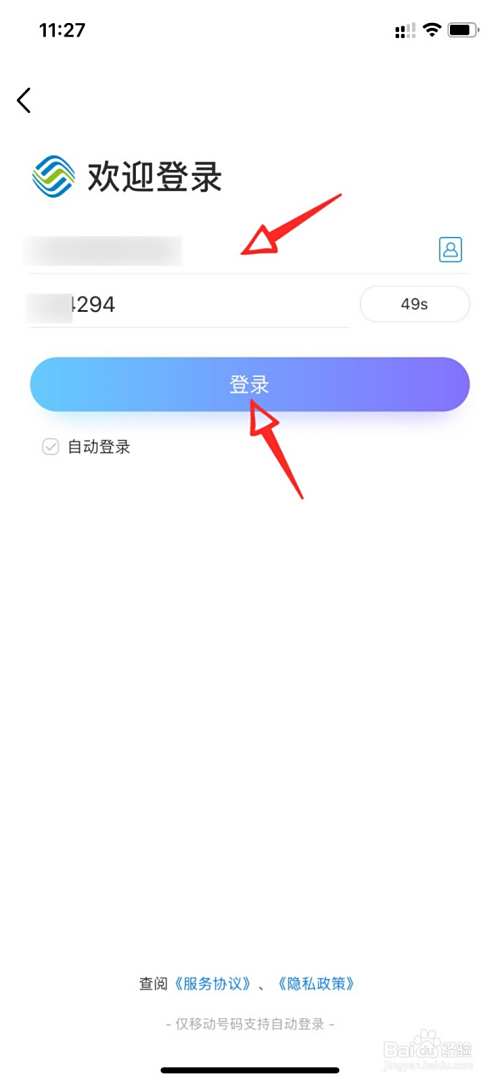 在登录的页面里,输入补登记的手机号码和验证码后点击“登录”。