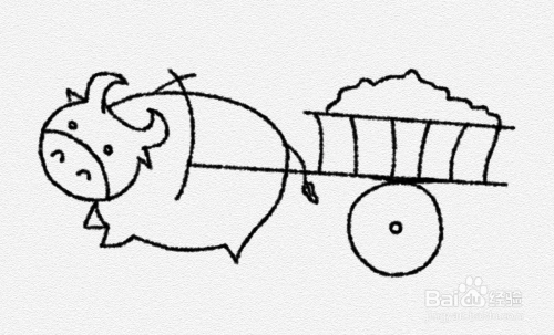 然后在老牛的后边画上拖着的马车。