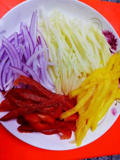 土豆、洋葱、彩椒切丝