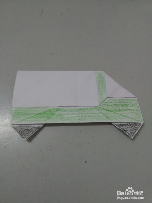 再将纸的右上角向左下方折,折成车头部分的顶部。