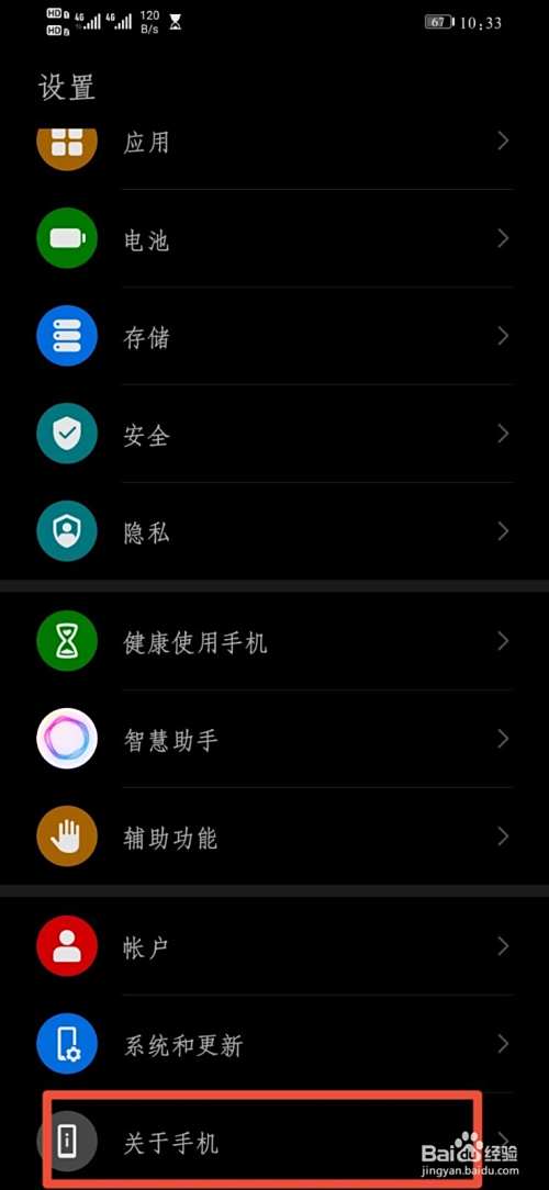 得到设置画面后,下划到最下面,找到并且点击关于。