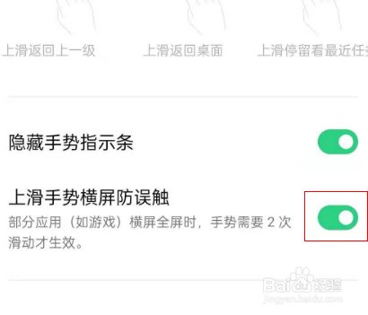 可以通过oppo手机设置功能,在导航方式页面设置上滑手势横屏防误触开关为开启状态即可。
