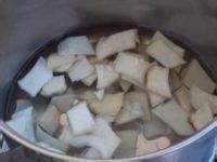 杏鲍菇洗干净切成片。杏鲍菇入水焯。