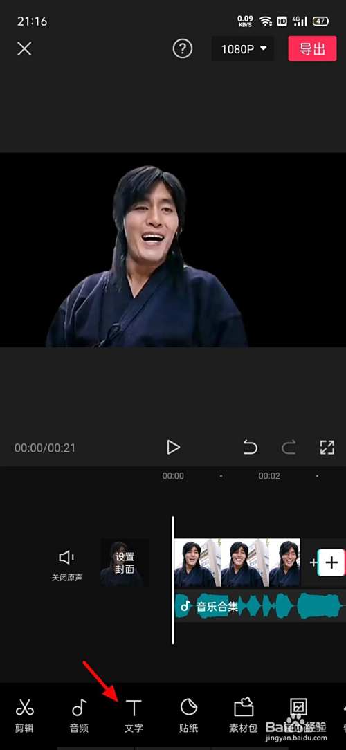 在剪辑页面,点击文字。