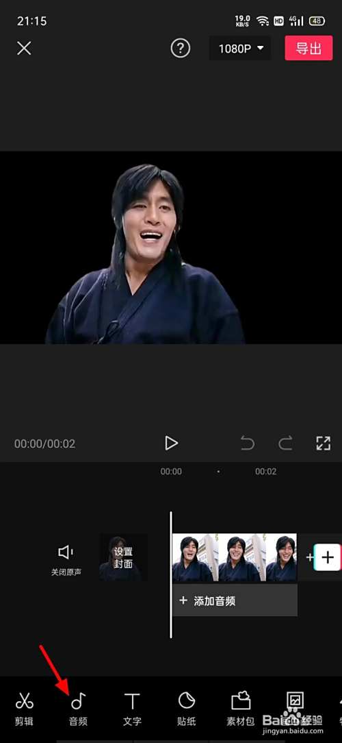 在剪辑页面,点击音频。