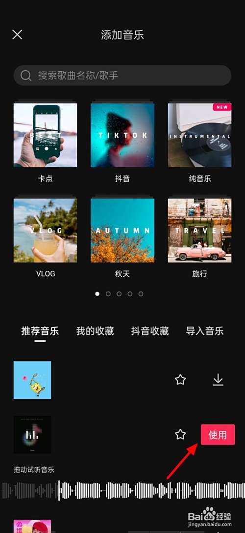 选中音乐,点击使用。