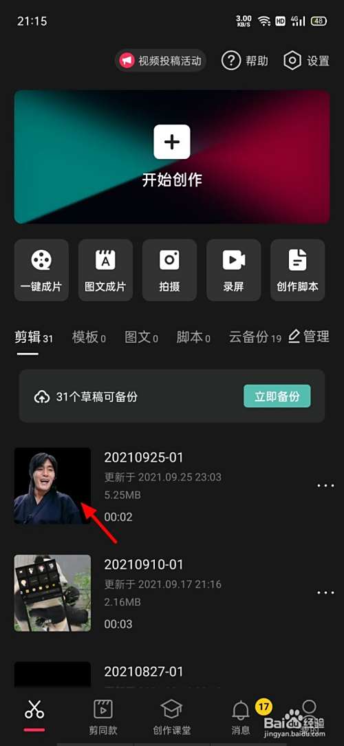 在剪映页面,点击视频。