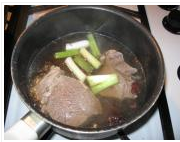牛肉泡冷水中去掉血水,放入冷水锅内,大火煮开,去掉表面的血污泡沫,大约煮几分钟后,放入葱节,姜片,花椒,大料,酱油,精盐,料酒,改小火煮约1小时(看牛肉大小)至牛肉熟透软烂。