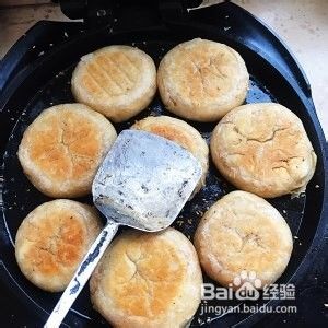 翻过来接着,两面焦黄就好了,用铲子拍打烧饼几下,提前预热烤箱195度,烤15分钟左右。这样更酥。没有烤箱的步骤可以省略。直接用电饼铛烤熟就ok了。