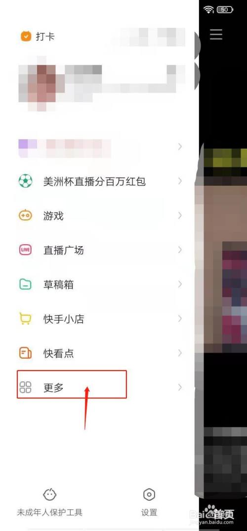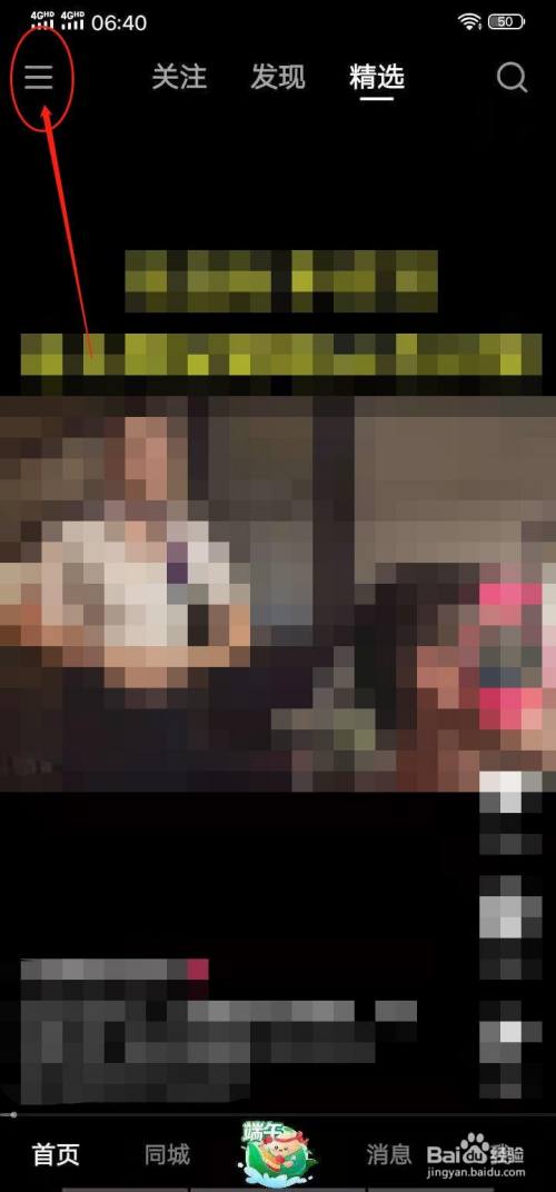 点击打开快手,然后点击左上角菜单图标。