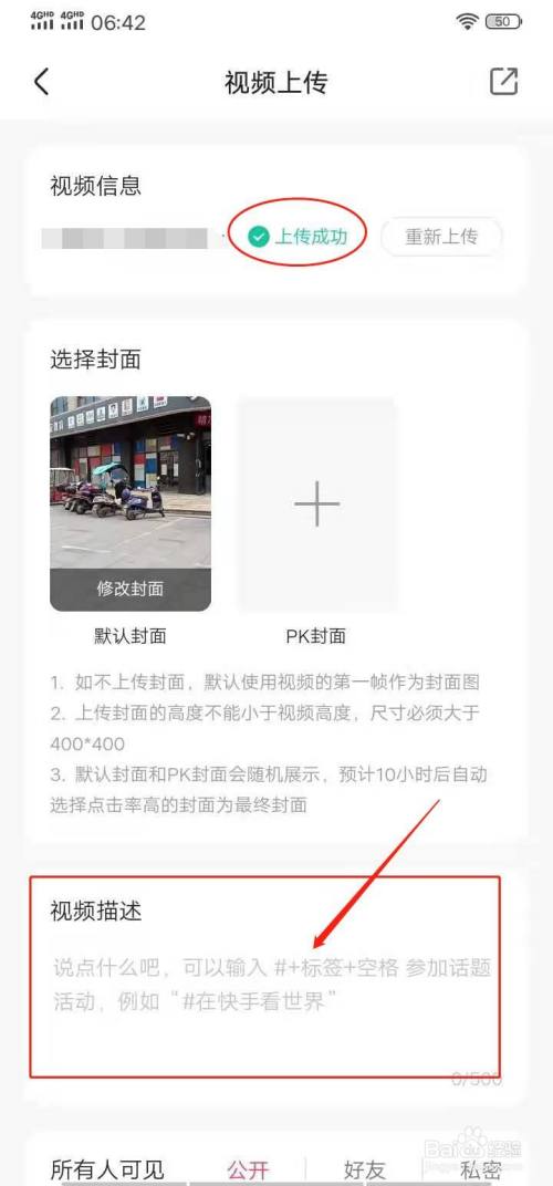 视频上传成功后,点击输入视频简介。