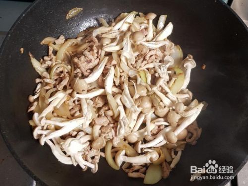 鸿禧菇炒软后下一碗黑胡椒酱下一碗水拌炒入味即可