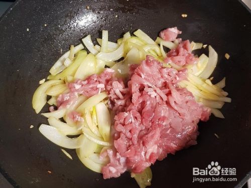炒软后下肉丝肉丝可腌可不腌(酱油米酒少许腌30分)