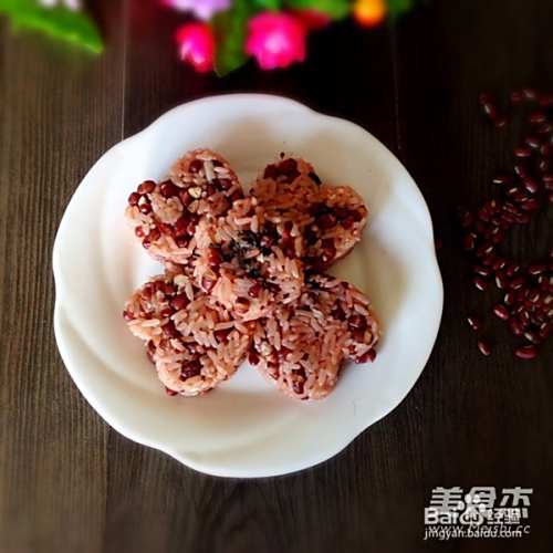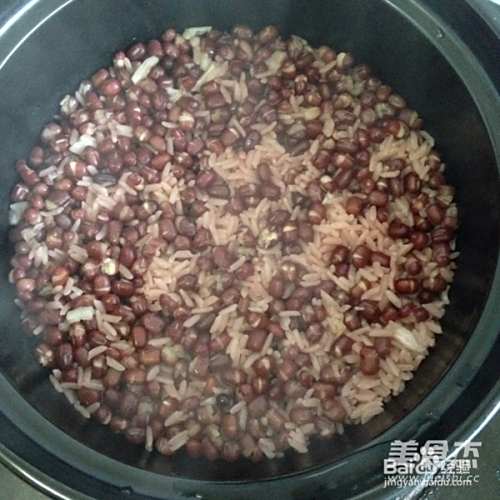 6米饭中夹有红豆的香味,咬起来很好吃哦!由于人体对豆类的消化速度大大低于米饭和米粥,用大米和豆子一比一地配合,煮成豆子饭是很不错的选择