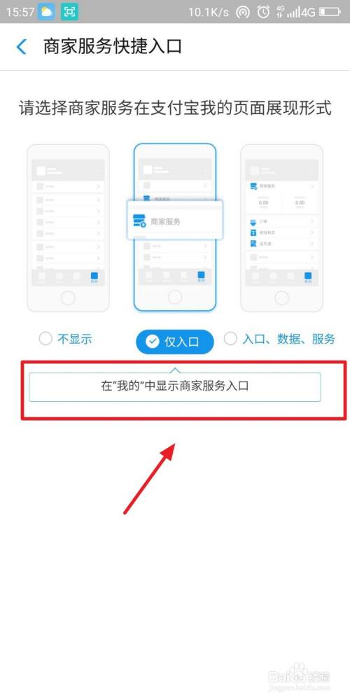 最后点击“在我的中显示商家服务入口”,如图所示: