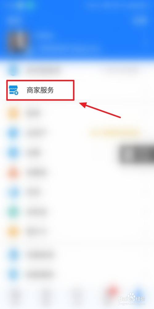 然后点击“商家服务”,如图所示:
