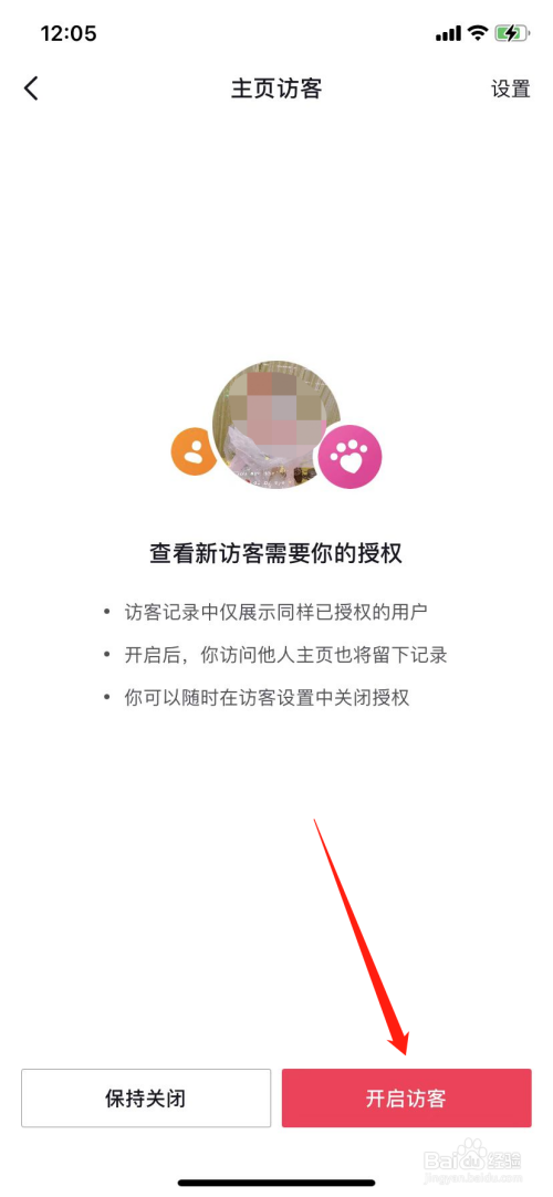 点击开启访客,但是注意开启后,你访问他人主页也会留下记录;