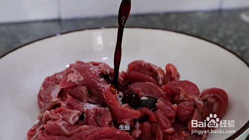 羊肉切片,加入盐,生抽,胡椒粉,孜然粉,葱,姜,蒜片用手抓均匀。