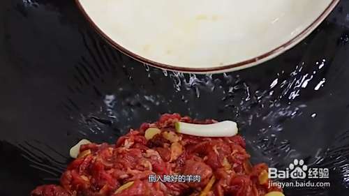 起锅烧油,倒入腌好的羊肉,炒至羊肉变色,盛出盘中备用。