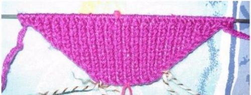 5、这是完成的鞋帮,63行;原来的25针在反面与右边的25针缝合,加的25针作里衬用