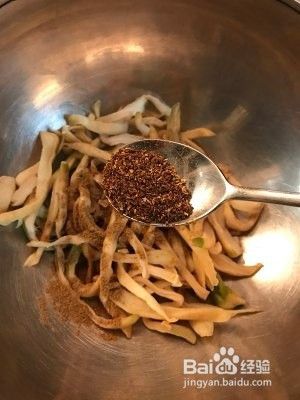 萝卜干放入小盆里加入半勺花椒面