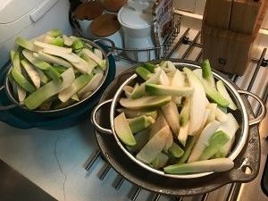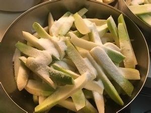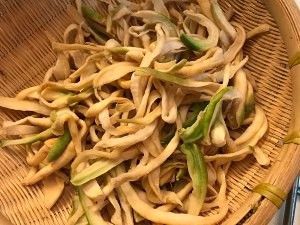 捞出萝卜条,放在漏网上沥干水份
