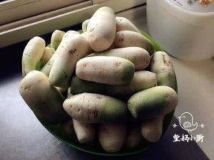 萝卜要选刀把萝卜,吃起来口感好,实在没有可以用细一点的青萝卜代替。将鲜萝卜浸入清水中洗去污泥,捞出沥干,削去叶与须根,放在通风阳光下地方晾半天。