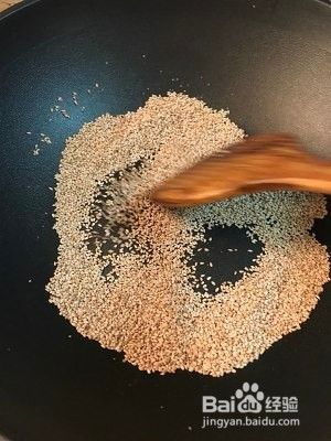 白芝麻用炒锅煸熟,放凉