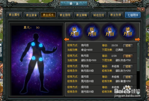 君主成长:战力的主要提升方式之一,里面有多重增加幸运和诅咒的方法,使用精神力点击丹田,可以获得幸运和诅咒;