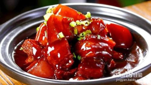 加入没盖过所有材料的热水,不盖锅,大火烧开,撇去浮沫, 加入姜和红枣,大火煮开后转小火炖40分钟~1小时;大火收汁 边收酱边炒;直到酱汁浓稠,每一块五花肉都沾满酱汁,然后装入盘中即可。