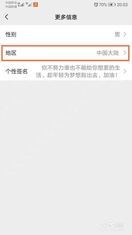 进入更多信息,选择【地区】;