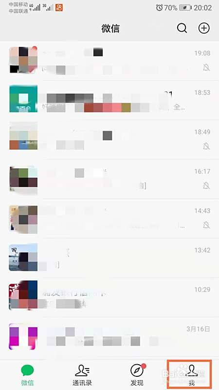 首先我们打开微信首页面,点击右下角【我】;