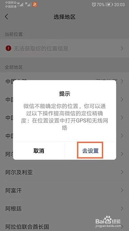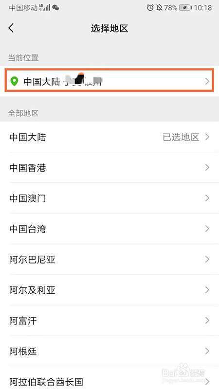 进入选择地区页面,点击【当前地区】,弹出页面点击【去设置】;