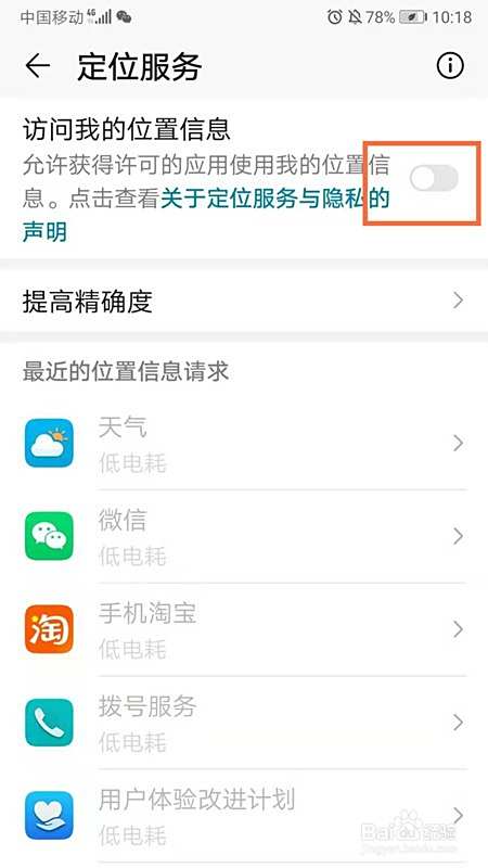 进入定位服务页面,点击打开【访问我的位置信息】;