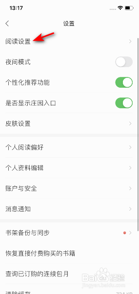 然后点击阅读设置。