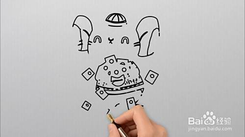 然后,画出仓鼠的眼睛、鼻子和衣服