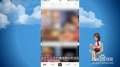 打开快手APP的首页面,选定左上方的横线图标并点击。